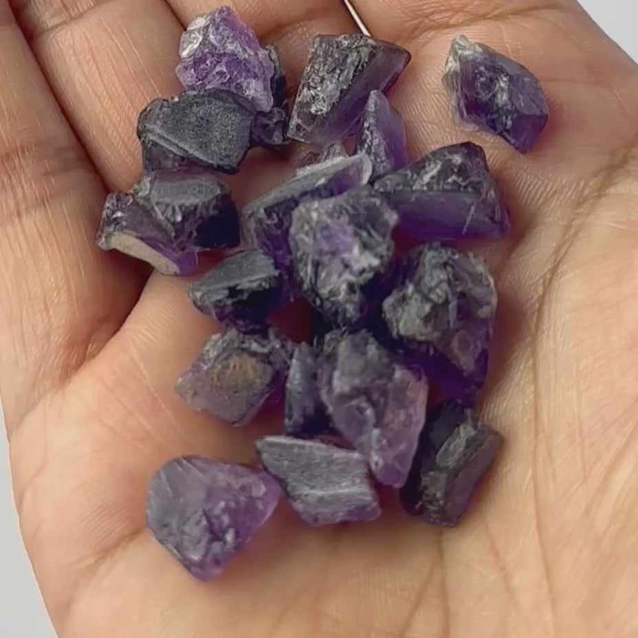 Rich purple Amethyst rough pieces showcase bold colour and organic texture, perfect for expressive jewellery designs and creative artisan projects.