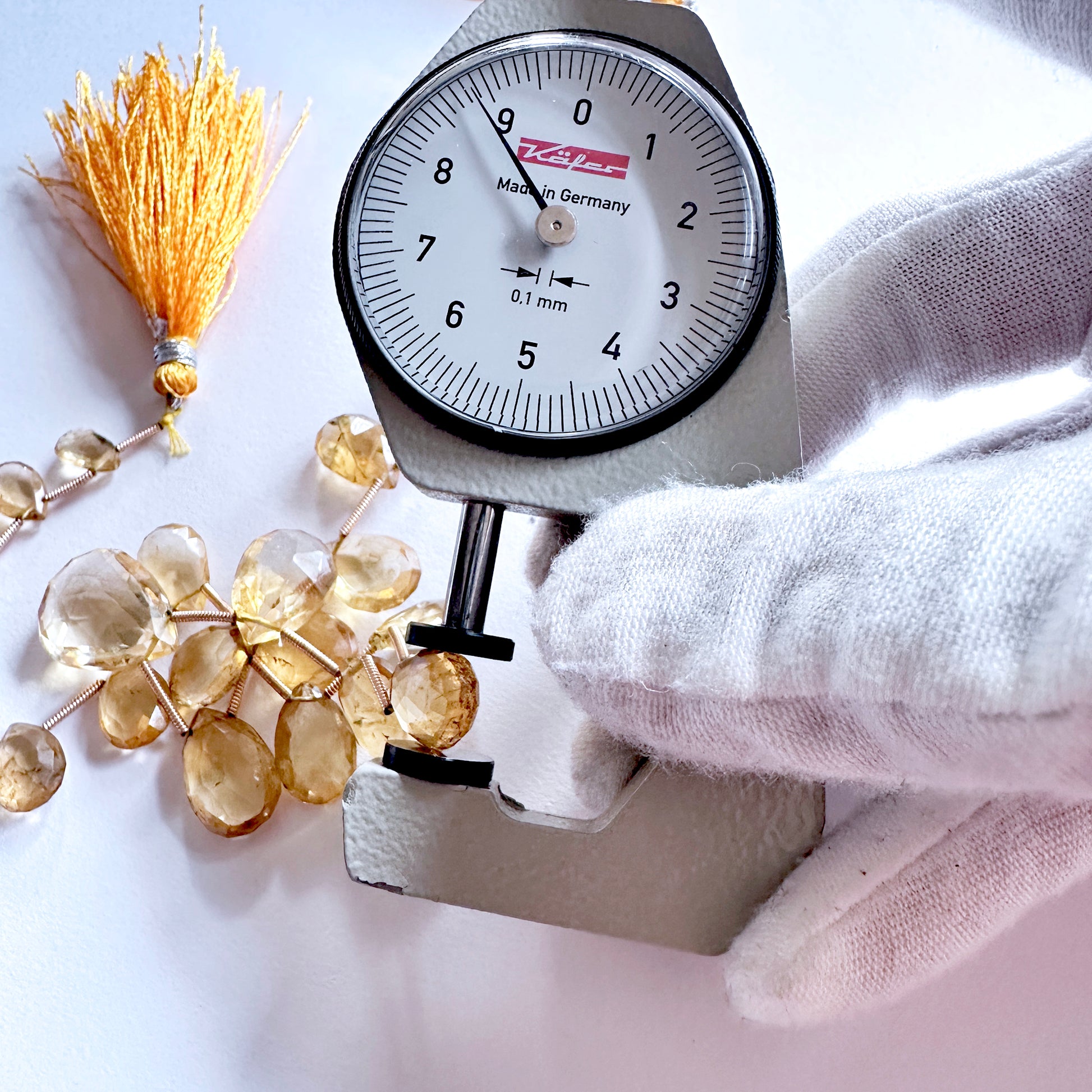 Experience the radiance of our Citrine Faceted Pear Beads. With their stunning 10-18mm size and 27cm strand length, each of the 25 pieces boasts a total of 80 carats of pure elegance. The 0.5mm bead hole size adds versatility to your designs. Elevate your jewellery making game with this must-have gemstone.