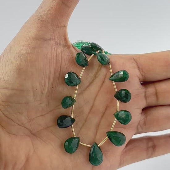 These Emerald faceted teardrop gemstones feature lengths of 9.5–14mm and breadths of 7.5–8.5mm, showcasing vivid green colour and sparkling cuts that highlight their quality. With 14 pieces totalling 47 carats, they offer elegant movement and refined craftsmanship, perfect for luxe earrings, pendants or meaningful gifts. Their rich tone and artisanal finish make them a standout choice for expressive jewellery designs. Add these striking Emeralds to your next creation today.