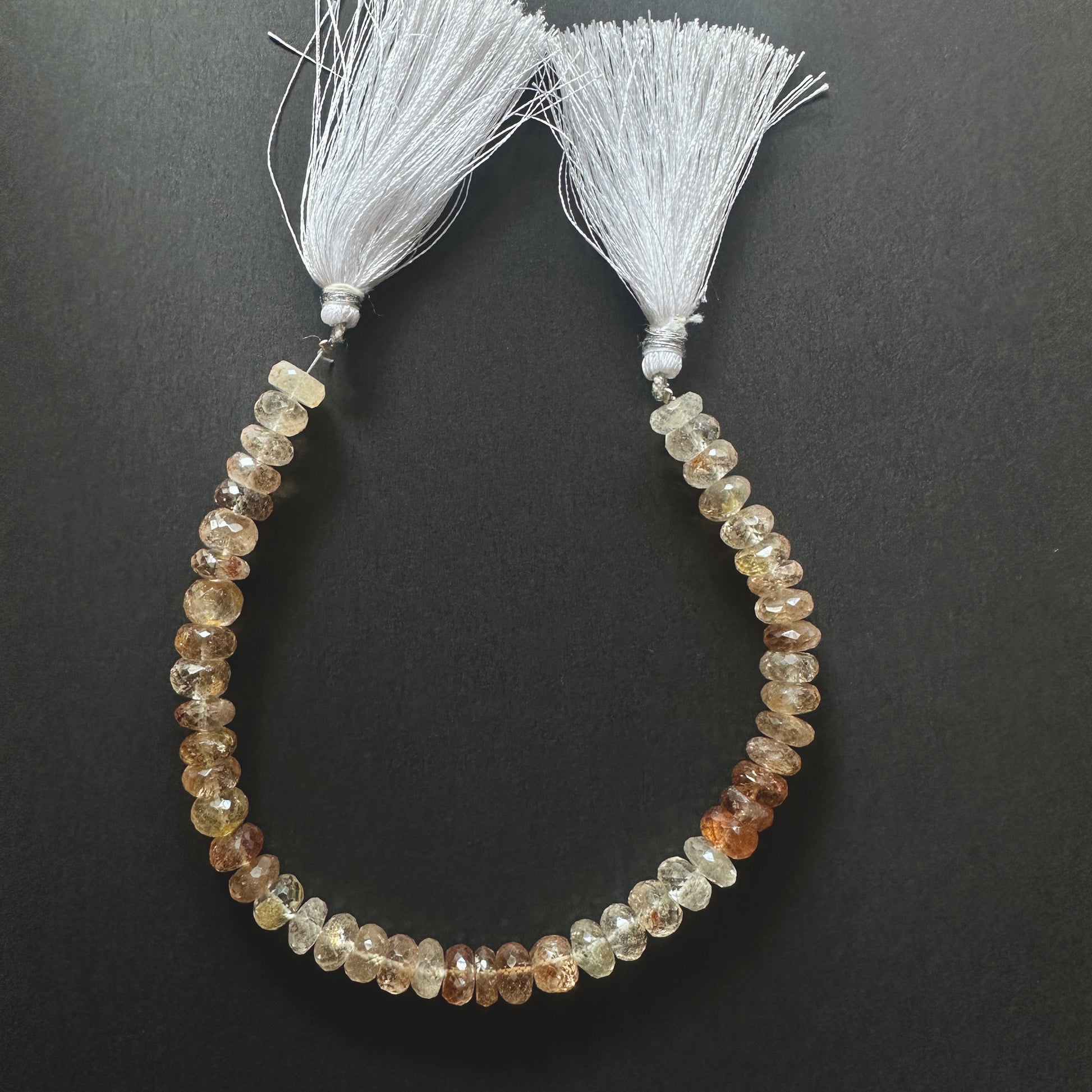 Add a luxurious glow to your jewellery designs with Imperial Topaz faceted rondelle beads. Measuring 8-8.5mm, these natural gemstone beads shimmer with warm golden-pink tones and are expertly faceted for maximum brilliance. Each 23cm strand is drilled with 0.5mm holes, making them ideal stone beads for DIY jewellery projects. Their bold size and radiant finish make them standout handmade jewellery components for necklaces, statement earrings, or layered designs. Whether you're crafting for a bespoke collection or a personal keepsake, these Imperial Topaz beads bring elegance and depth to every creation. Secure your strand and start designing today.