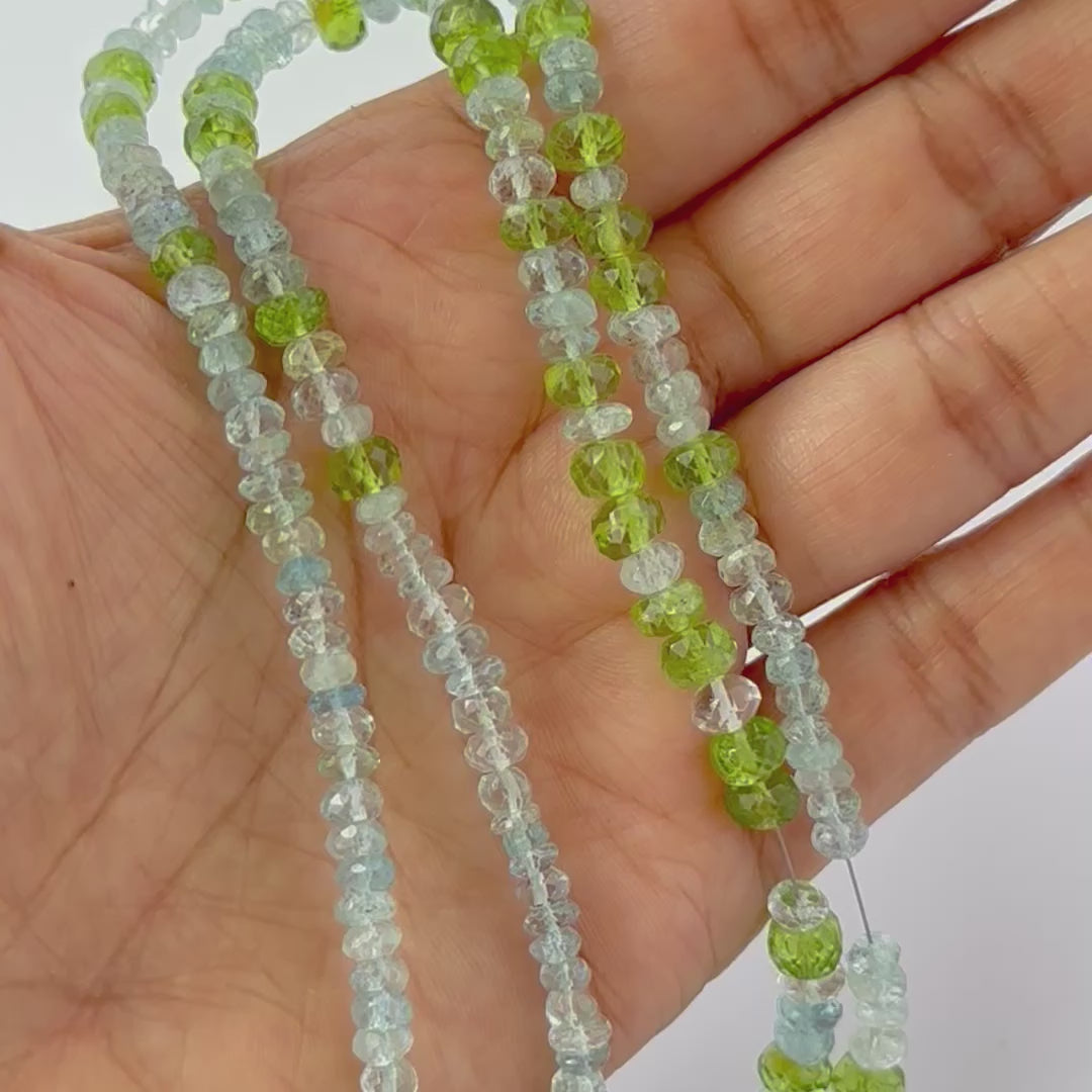 Multi Stone - Peridot and Aquamarine | Faceted Rondelle | 5-6mm Bead Size | 29cm Strand Length
